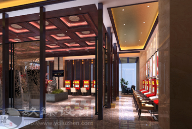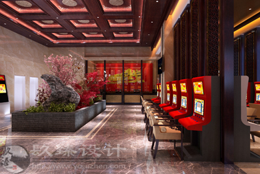 中福在線的裝修風(fēng)格偏向于中式,作為一個福利彩票站說它豪華一點也不為過,銀川裝修設(shè)計公司镹臻設(shè)計師魏東晨非常懂得如何在裝修設(shè)計中“造景”,經(jīng)典中國紅占據(jù)主導(dǎo)地位的整體裝修中抒發(fā)了設(shè)計師自己的審美情趣和情感思想。如何做到“寄情遠(yuǎn)山”,將詩情畫意寫入福彩中心,這就是中式古典的魅力。