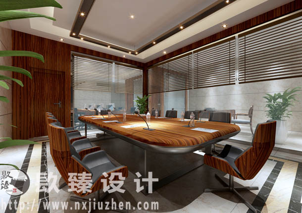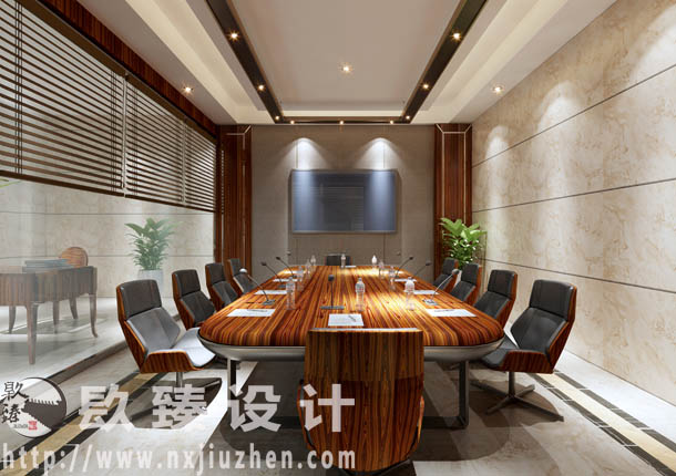 總經(jīng)理辦公室,簡單的石膏線吊頂,水晶燈,烤漆木桌子,黑色皮椅,辦公桌后還有一個書柜,在這樣一個狹小的空間里,實現(xiàn)了這么多的功能,設(shè)計師對于每一個面積的使用都沒有浪費(fèi),做到了空間的合理利用。會議室使用烤漆色辦公桌搭配白色的地板顏色,既莊重又不是沉穩(wěn)。