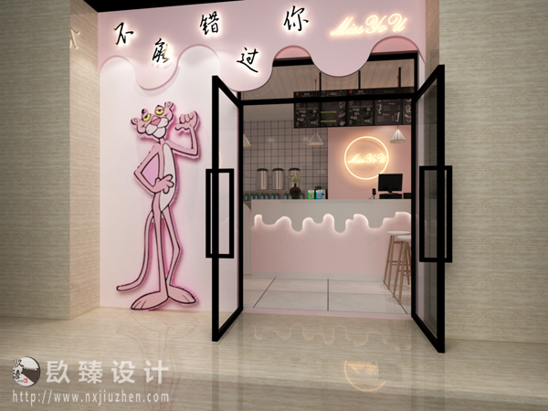 不能錯(cuò)過你奶茶店的門頭都采用鮮亮的品牌主打色調(diào)粉色,上面印著不能錯(cuò)過你的品牌名和一只可愛的粉紅豹,凸顯出奶茶店的特色。門頭是一家店鋪的臉面,采用明亮的色彩讓人第一眼就印象深刻,就能吸引更多的顧客。同時(shí),整個(gè)店的裝修風(fēng)格為現(xiàn)代簡(jiǎn)約風(fēng)格,簡(jiǎn)約的線條,時(shí)尚的造型,流行的色彩,讓人感受自由的氣氛,更能激發(fā)天馬行空的想象力。