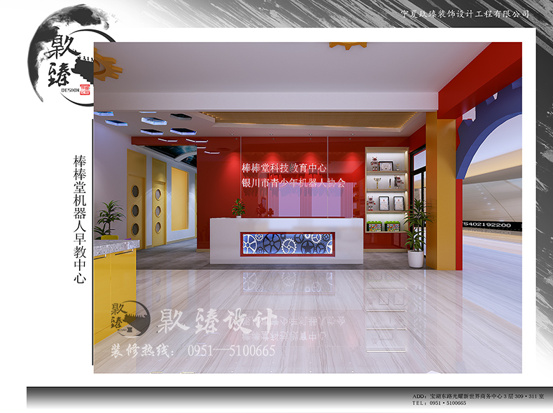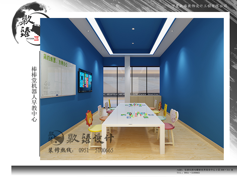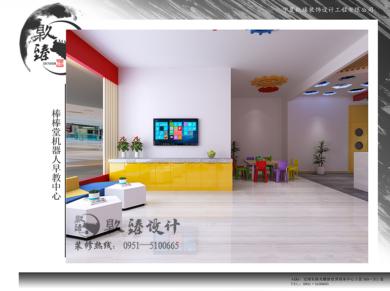 銀川裝修公司镹臻設(shè)計今日為大家?guī)淼氖琴Y深設(shè)計師桂淑萍的經(jīng)典案例:棒棒堂機器人早教中心。