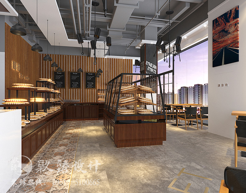 燈飾的搭配呢?設計師以都市范兒,文藝的格調來作為畫龍點睛的作用,這樣可以體現出與眾不同的品味,突出了蛋糕店的品牌。