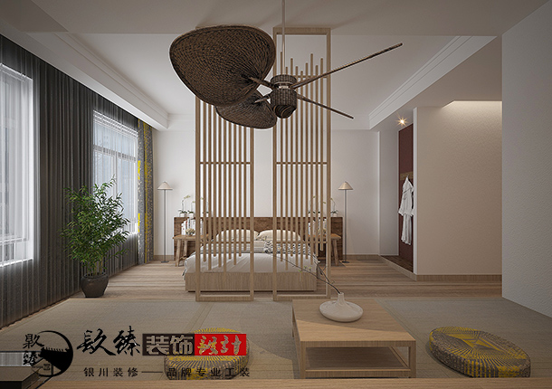 原木生態(tài)木飾面和地面地板構(gòu)成一幅大自然柔和的畫面,該酒店套房比較簡約,所有的家具設(shè)定都是屬于非常小巧類型的。為了縮小一部分投資設(shè)計(jì)師省去了沙發(fā)等家具的使用,以日式坐墊代替,顯得更為自然,銀川裝飾公司镹臻裝飾小編認(rèn)為這家酒店設(shè)計(jì)的非常有格調(diào),小資情懷。和一家人出去散心旅行,一定會(huì)讓您非常滿意。