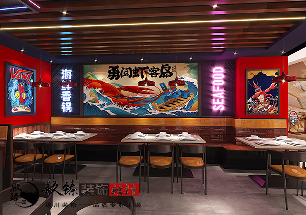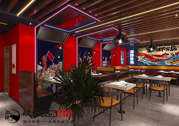 銀川裝修公司請(qǐng)您欣賞一家專業(yè)以“魚和蝦”為特色的工業(yè)風(fēng)連鎖主題餐廳
