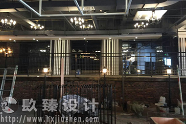二樓用餐區(qū)也已經初步完成,期間包括壁燈、造型吊燈、造型吊頂?shù)氖┕ぱb修。通過經驗豐富的工長和在不斷對照施工圖紙進行施工交接工作,并且細心測量尺寸后裝修而成的工業(yè)風格酒吧已經完美呈現(xiàn)了。