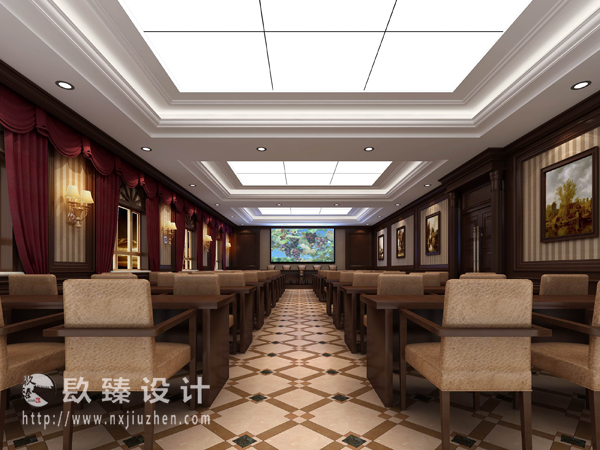 會(huì)議室的色調(diào)更是獨(dú)特而大方,布藝椅子配上成木紅漆桌子,成一字型的擺列方式,讓整座會(huì)議室彰顯安靜而沉穩(wěn)的感覺,配上紅色而質(zhì)感的窗簾,如果在開會(huì)期間,可以阻擋外面過于強(qiáng)烈的陽(yáng)光,也可以發(fā)揮投影儀的功能,墻壁再掛上法式畫,讓文藝的氣息顯得淋漓盡致。
