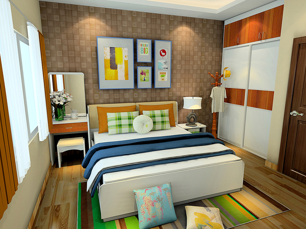 3.約有1/3的臥室墻面會(huì)被家具所遮擋,因此,墻壁裝飾宜簡單,可在床頭的上部擺放一些個(gè)性化的裝飾品,但選材應(yīng)符合裝修整體色調(diào)。如果想要烘托臥室氣氛,可選用墻紙或涂料,但顏色花紋應(yīng)根據(jù)自己的年齡與喜好來選擇。