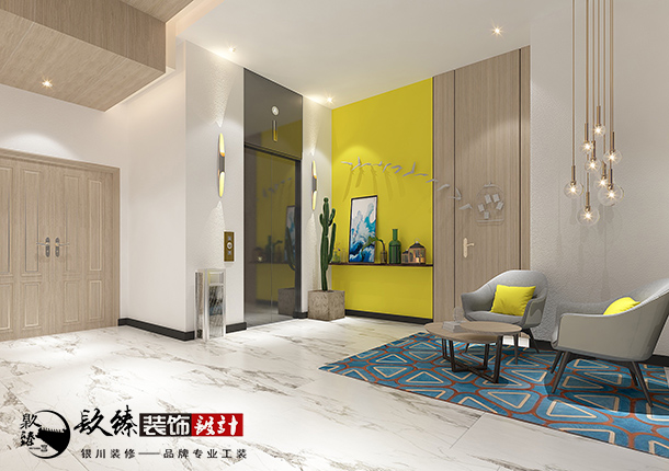 大廳墻面主要以硅藻泥材料,顏色以白色為主,為了使顏色不過于太單調,設計師將明亮的黃色融入其中,立刻將整體效果變得非常的活潑,黃色是一個高可見的顏色,作為銀川裝修公司|銀川賓館酒店裝修設計中的點綴效果非常好。該酒店有一種城市中小資的感覺,潔凈,還非常具有線條感,簡單的前臺設計,配幾盞造型吊燈,將簡單的藝術氣息升華,休息區(qū)簡單的布藝沙發(fā)給人一種懶洋洋的錯覺。因為墻面是簡單的白色,所以在地磚的選擇上,設計師也是使用以灰白色花紋,大家也許會想到,這樣大量的使用白色調來進行空間裝飾,會不會使整體效果看起來很飄呢?小編這樣告訴您,完全不會,因為設計師在踢腳線以及其他可以將線條感加以修飾的材料運用的非常的恰當,讓空間更有整體感,所以不會有飄的感覺,況且銀川裝修網的銀川镹臻裝飾的設計師在配色和造型上都選擇了非,F代前衛(wèi)的,所以更不用有所顧慮啦。