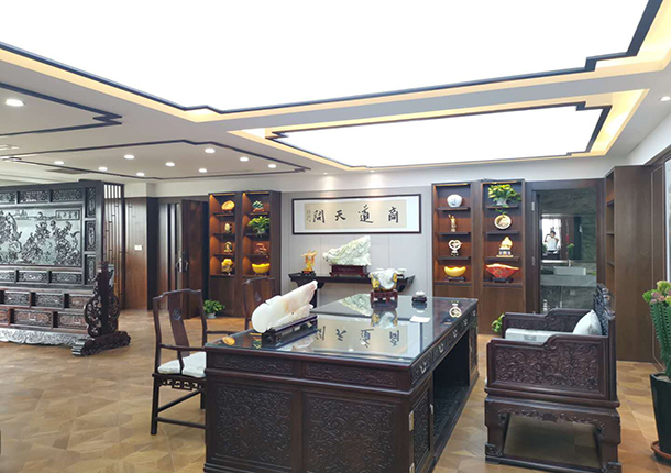 在一層的裝修設(shè)計中,將前臺劃分到這里,一直到二層的辦公區(qū),都是基礎(chǔ)的裝修設(shè)計。到了三層開始,就以深色為主。因為是經(jīng)理辦公室,所以將三層設(shè)計成有深厚沉穩(wěn)的底蘊(yùn),中式裝飾造型的風(fēng)格:主要采用硬朗簡潔的直線條,空間具有層次感,又符合現(xiàn)代人追求的時尚感、實用性。古典古香的基調(diào)、家具與裝飾的搭配。銀川裝修公司镹臻裝飾的設(shè)計師利用桃木的家具、定制桌椅、以增添新中式的原汁原味。