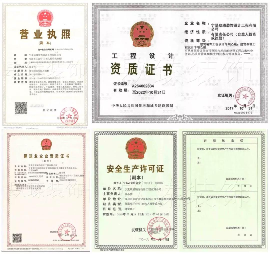 寧夏镹臻裝飾設(shè)計(jì)工程有限公司是寧夏高端的工裝裝飾設(shè)計(jì)、施工企業(yè),擁有國家建筑裝飾裝修施工貳級資質(zhì),設(shè)計(jì)乙級資質(zhì)。