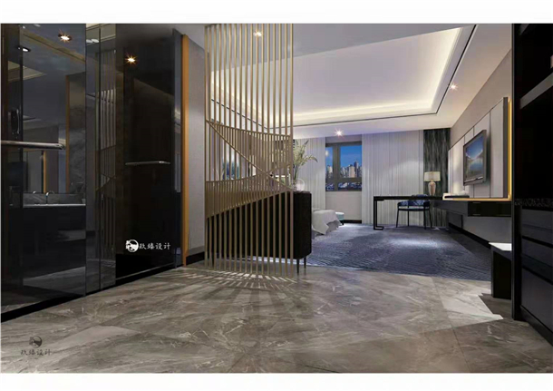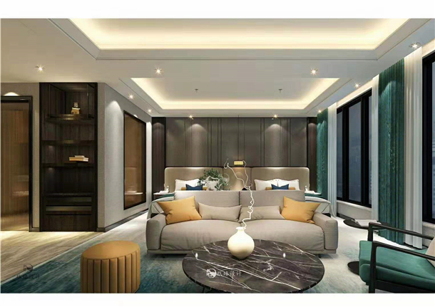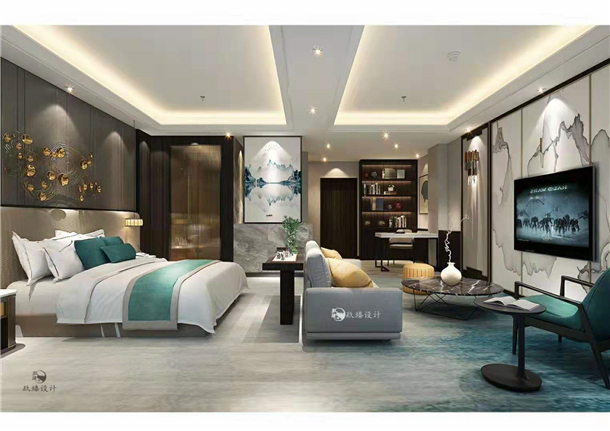 使用胡桃色木質(zhì)材料作為柜體的主打色,這種顏色給人一種沉穩(wěn),低調(diào),復(fù)古藝術(shù)的感覺,對(duì)于一些出差需要和客戶溝通的人士,該酒店是不二之選。將生活的空間進(jìn)行細(xì)化,區(qū)域進(jìn)行裝飾分化,客房內(nèi)的簡(jiǎn)約,高雅格調(diào)以及具有新中式古典風(fēng)格的陳設(shè)營造了舒適的休閑空間。