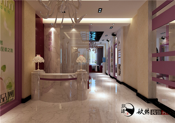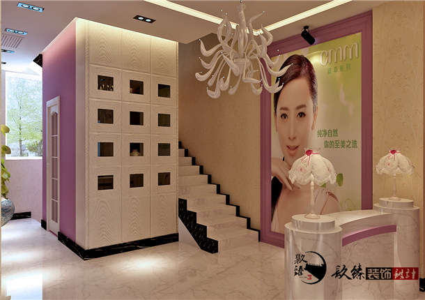 設計師在美發(fā)店中心部位選擇輕快愉悅明了的色彩為裝修主色調,墻壁、地面、天花等運用大面積的造型色彩,細節(jié)部分經過特殊的處理。店面入口我們多采用落地玻璃,增加店面的擴張感及通透感。店里所有的工具都擺放得非常整齊,并有專門的整理箱和整理架。