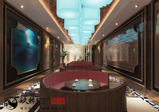 燒烤店包間的設(shè)計(jì)是為了給廣大客戶帶來更好的體驗(yàn),包間里更具隱秘性,到了周末,組織三五群人來一場(chǎng)吃喝盛宴實(shí)在是一種美好生活的享受。小編今天為大家?guī)淼氖黔t云燒烤店的KTV包間裝修設(shè)計(jì)效果圖。本家店鋪是結(jié)合燒烤與KTV一體的音樂餐廳,無論是在餐飲還是娛樂上都是為了滿足客戶的需求,認(rèn)為在環(huán)境上需要襯托一種激昂的氣氛。在燒烤店包間的裝修設(shè)計(jì)中,銀川燒烤店裝修|銀川燒烤店裝修設(shè)計(jì)|镹臻裝飾小編覺得燈光的搭配是重點(diǎn)之一,娛樂場(chǎng)所的初衷在于給如何給客戶更好的心情,多彩絢麗的燈光可以使前來消費(fèi)的顧客更加放松,大家在看電視音樂節(jié)目的時(shí)候都會(huì)注意到一點(diǎn),舞臺(tái)的燈光經(jīng)常是非常絢麗柔和的,這樣的燈光會(huì)使臺(tái)上表演的歌手釋放的揮灑自如,那么KTV包間的設(shè)計(jì)也是這樣的道理。顧客來到這里希望邊用餐的同時(shí),以歌唱的形式發(fā)泄自己內(nèi)心的喧囂,灰暗的燈光更有包容性,非常符合包間的裝修設(shè)計(jì)。