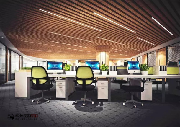 大廳設(shè)計中,設(shè)計師們將空間分為接待區(qū)與開放辦公區(qū),在設(shè)計元素中則同樣使用塑膠鋪設(shè)地面、生態(tài)木造型吊頂配合LED鋁合金燈管,以此來增加空間的自然感和明亮度;再加上木質(zhì)造型圖書柜,在自然的木質(zhì)元素中,體現(xiàn)現(xiàn)代風(fēng)格所追尋的與眾不同。