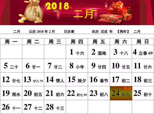 公元2018年02月10日 農(nóng)歷12月25日 星期六 水瓶座