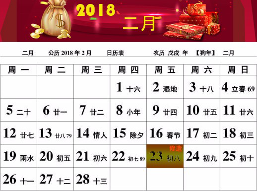公元2018年02月08日 農(nóng)歷12月23日 星期四 水瓶座