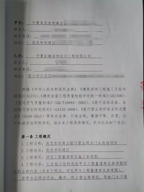 吳忠市商業(yè)銀行裝修項目簽約镹臻裝飾,合作愉快! |